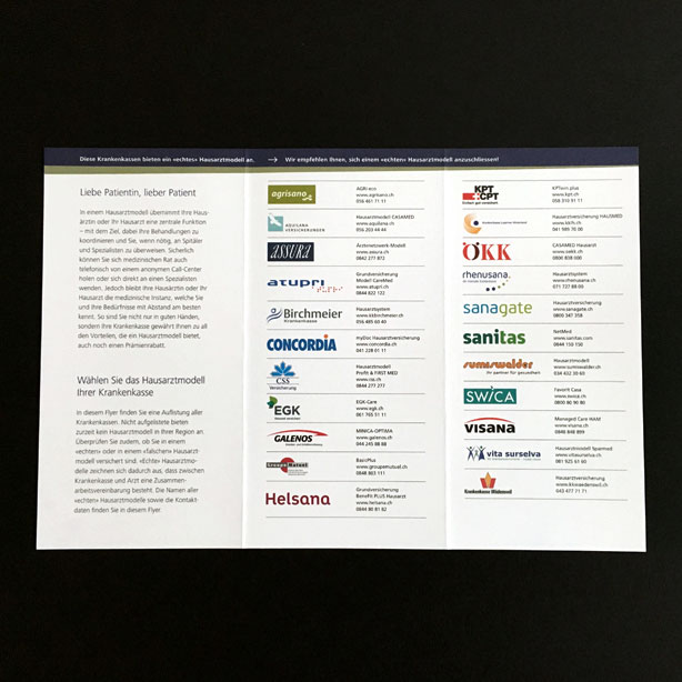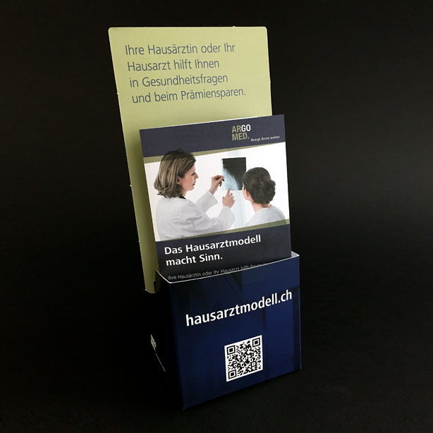 Argomed setzt sich für die Kommunikation rund um das Hausarztmodell ein. Nebst der optimierten Website www.hausarztmodell.ch sollen sich die Patientinnen und Patienten direkt beim Hausarzt über das Hausarztmodell mittels Flyern in Dispensern und Plakaten informieren können. Die zentrale Informationsplattform www.hausarztmodell.ch steht dabei immer im Zentrum.