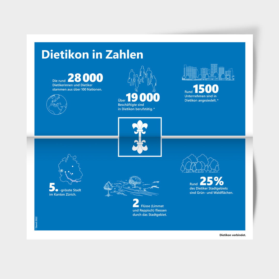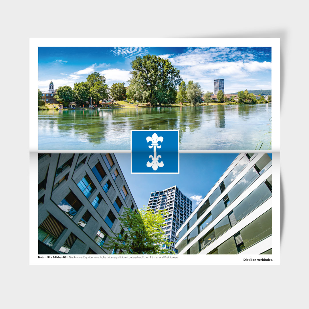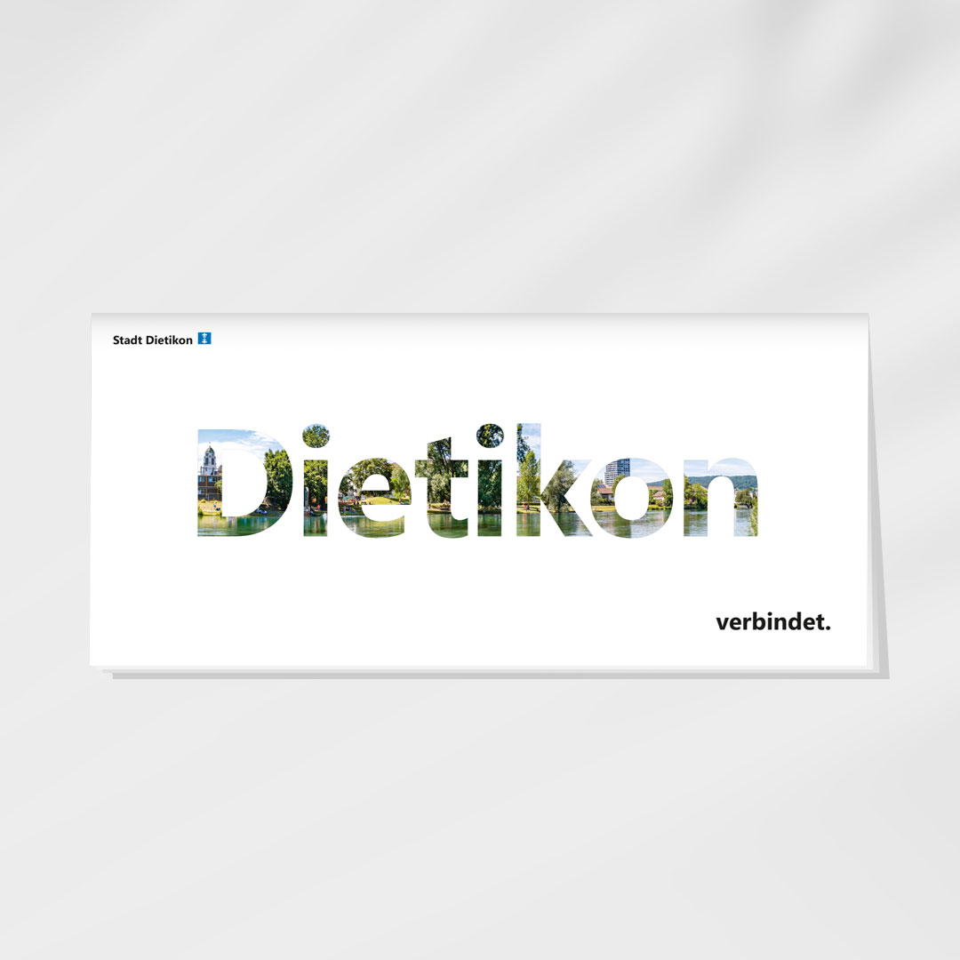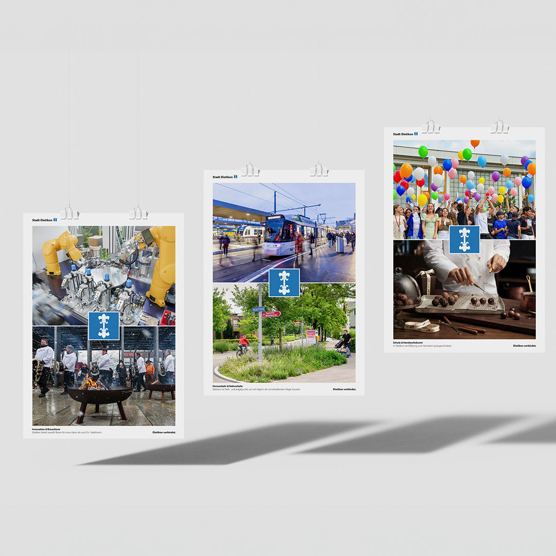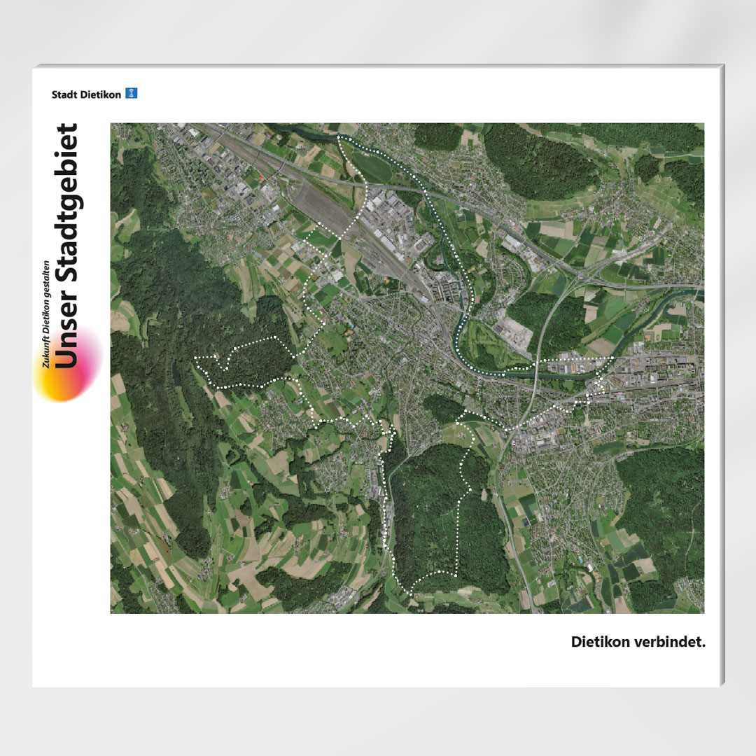 Im Auftrag der Stadt Dietikon gestaltete KOMMPAKT die Ausstellung «Dietikon heute und morgen» im Forum für Stadtentwicklung, Innovation und Kultur. Ziel war es, die städtebauliche Vision der Stadt erlebbar zu machen und aktuelle sowie zukünftige Projekte anschaulich zu präsentieren. Zentrale Elemente der Ausstellung waren grossformatige Stelen, die einzelne Entwicklungsprojekte wie das Niderfeld, den neuen Bahnhofplatz oder das Arbeitsplatzgebiet Silbern visuell und inhaltlich zugänglich machten. Ergänzend dazu konzipierten und produzierten wir begleitende Kommunikationsmittel – darunter Flyer, Plakate und eine Broschüre –, die den Besucherinnen und Besuchern einen vertieften Einblick in die geplanten Vorhaben ermöglichten.